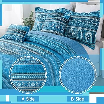Amazon Com Vaputar Bedding Sets Collections Cotton Quilt Sets King Size Bedspreads King Size Boho Quilts Bohemian Floral Bedding Set For Farmhouse Bedroom Blue Home Kitchen